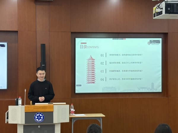 最后,赵祥辉坦诚分享自身读博期间的心态波动历程,从开学典礼的豪情满怀,到因课程汇报被批评的自我怀疑,再到逐步突破发表瓶颈、完成博士论文的成长,指出“心态波动是常态”,建议研究生通过“建立学术兴趣、强化元认知、坚持反思写作”养护研究心态,还分享了疫情期间组织线上学术沙龙、宿舍学术讨论等“自主构建学术交流圈”的方法,为资源有限的研究生提供“自救”思路。