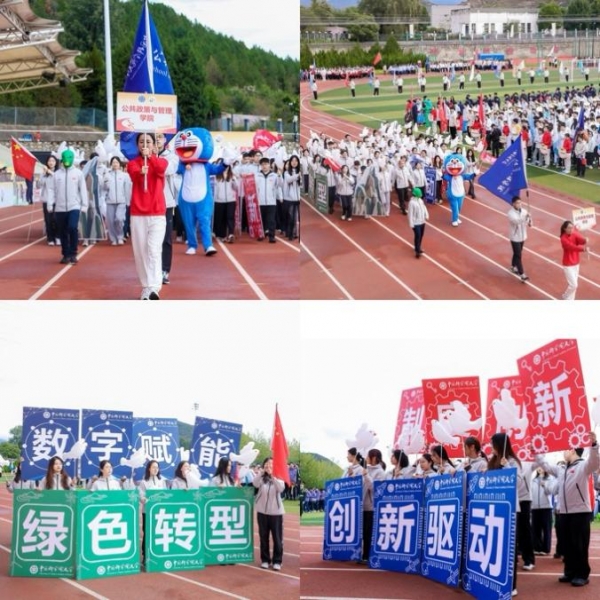 开幕式上,公管学院方阵师生们身着统一的白色运动服,手持象征和平与希望的白鸽,迈着铿锵有力的步伐走过主席台。整齐的队列宛如一支“政策实践先锋队”,既彰显着公管人严谨务实的治学态度,又洋溢着朝气蓬勃的青春活力。方阵成员高举的“创新驱动”“绿色转型”“数字赋能”“制度创新”四块主题牌,不仅是公管学院在科研领域深耕的核心方向,更成为赛场上独具特色的“精神旗帜”,精准呼应了学院“依托国家高端科技智库,培养公共管理人才”的办学定位。
