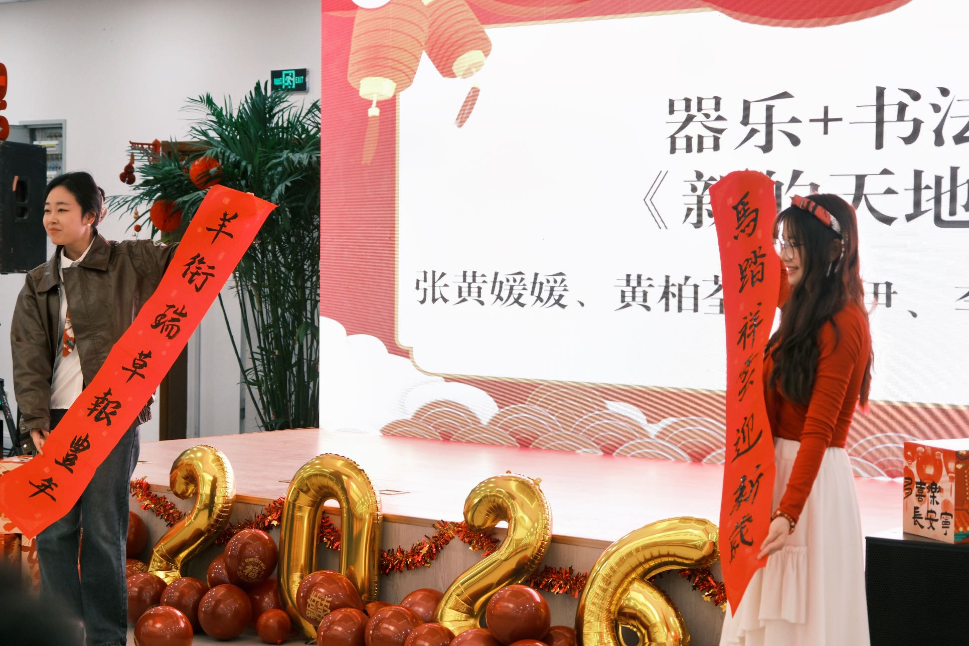 骐骝追风,象征着青年学子在科教融合沃土上的昂扬锐气。万骏奔腾,彰显着师生同行在智库建设征程中的磅礴力量。司俊儒、李泽齐带来的朗诵《马年追晨光青衿绘锦章》铿锵有力,表达了青年学子追逐梦想的决心;张黄媛媛、黄柏荃、朱伊、李子寒、赖泽媛同学带来的器乐与书法表演《新的天地》,动静相宜的东方美学,令人意犹未尽;王金银、李妍子的KPOP舞蹈串烧《拼好舞》活力四射,引爆全场。