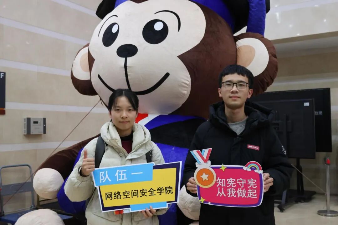 12月1日至7日,是第八个“宪法宣传周”。普法的热潮此前就已在校园内涌动。12月3日中午,雁栖湖校区二食堂门前广场热闹非凡。“法律咨询台暨‘法律知识闯关’普法活动”在此举行。师生在“我与宪法近距离”的条幅上郑重签名许下对法治精神的承诺。大家手持宣传单,开启“法律知识闯关”之旅。公共政策与管理学院/知识产权学院学生志愿者们还在现场提供法律咨询服务,并发放《中华人民共和国宪法》,将法律知识与趣味互动相结合,点燃师生参与普法的热情 。 ![]()